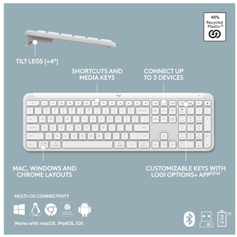 TECLADO LOGITECH SIGNATURE SLIM K950 WIRELESS BLUETOOTH WHITE