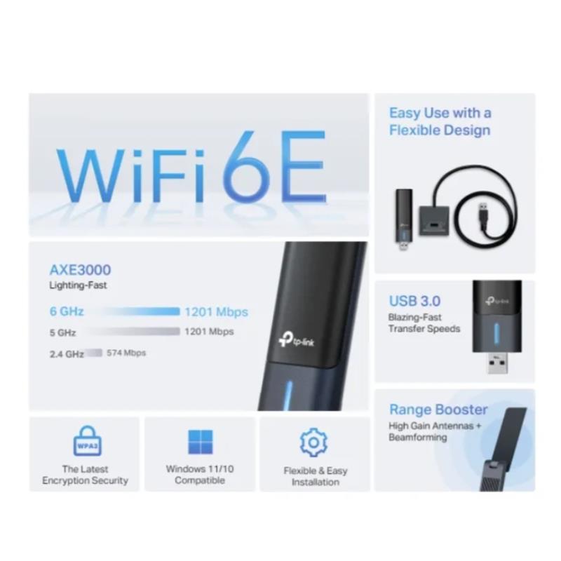 WIFI USB TP-LINK ARCHER TXE50UH AXE3000 WI-FI 6E HIGH GAIN DUAL BAND